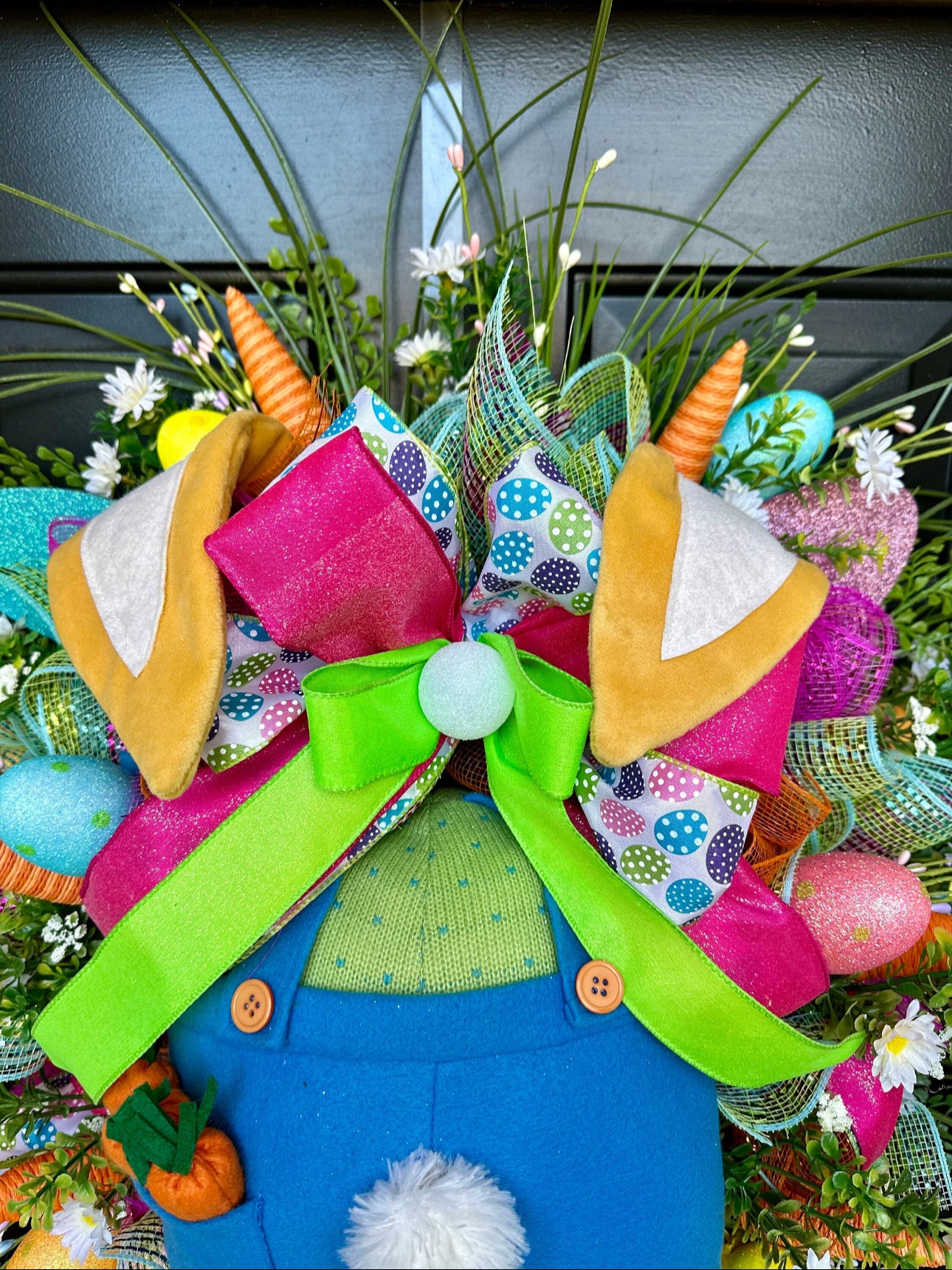 Introducing the Spring Easter Rabbit Front Door Wreath, the perfect way to welcome the season of new beginnings and fresh starts. This vibrant and charming wreath features an adorable Easter bunny adorned in blue pants, bringing a touch of whimsy to your front door. Made with high-quality materials, this wreath is crafted to withstand the elements and remain vibrant season after season. Measuring 18 inches in diameter, it's the perfect size to adorn any door or wall, and its colorful design is sure to brighten up your home and put a smile on the faces of all who pass by. Whether you're celebrating Easter or simply embracing the beauty of spring, the Spring Easter Rabbit Front Door Wreath is a must-have addition to your personal home décor collection. Order yours today and let the festivities begin!